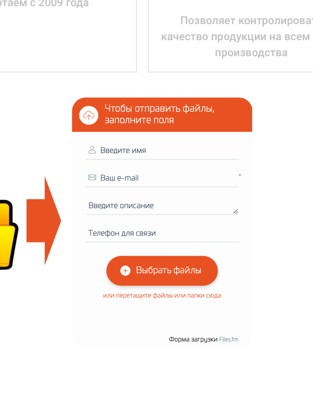 Klients uzmet failus un aizpilda formu. Faili un formas dati tiek saglabāti jūsu kontā.